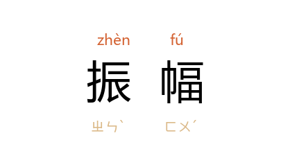 ⒈ 振动体自往复运动的中点至其运动所达一端的距离,即振动体振动时离开平衡点的最大位移。如音波每一振动的最高峰和最低峰。或指电波振动的长度。