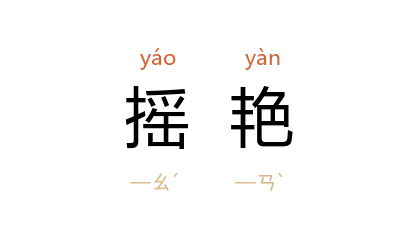 引唐·宋之问〈秋莲赋〉:「绿叶青枝,绿沟覆地,映连旗以摇艳。」唐·温庭筠〈黄昙子歌〉:「参差绿蒲短,摇艳云塘满。」