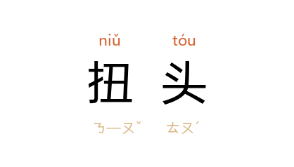 扭头,扭头儿[ niǔ tóu,niǔ tóu ér ]