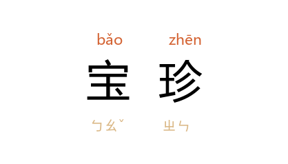 引《战国策·楚策四》:“宝珍 随 珠不知佩兮,褘衣与丝不知异兮。”汉 王逸 《九思·守志》:“歷九宫兮徧观,睹祕藏兮宝珍。”三国 魏 曹植 《圣皇篇》:“何以为赠赐,倾府竭宝珍。”