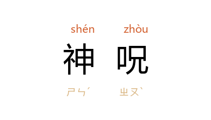 引《晋书·艺术传·佛图澄》:“少学道,妙通玄术……善诵神呪,能役使鬼神。”唐 玄奘 《大唐西域记·婆罗痆斯国》:“曛暮之后,各司其务,隐士诵神呪,烈士按銛刀。”《元史·释老传·八思巴》:“﹝ 胆巴 ﹞过 云州,语诸弟子曰:‘此地有灵怪,恐惊乘舆,当密持神呪以厌之。’”