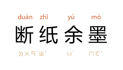 引《宣和书谱·詹鸾》:“彩鸞 以书《唐韵》名於时,至今断纸餘墨,人传寳之。”《宣和书谱·蔡京》:“而 京 独神会心契,得之於心,应之於手,可与方驾,议者谓飘逸过之。至於断纸餘墨,人争寳焉。”