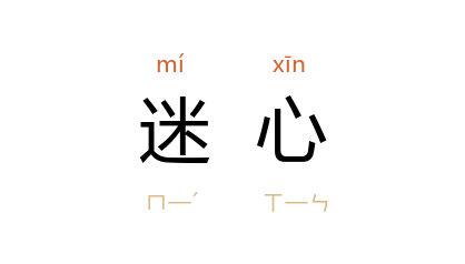 引晋 王嘉 《拾遗记·燕昭王》:“列女成羣,迷心动虑。”《法苑珠林》卷一一二:“此酒能迷心,何用復饮酒。”《武王伐纣平话》卷上:“若陛下令别人为使命,恐受 西伯侯 金珠好财物迷心。”