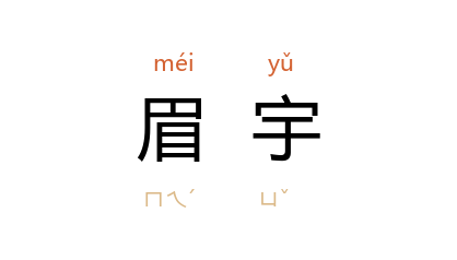 ⒈ 眉额之间。因面有眉额,似屋舍有檐宇,故称为「眉宇」。后泛指容貌。
