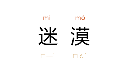 引潘漠华 《游子》:“一切,一切在迷漠的记忆里葬着的悲哀的影,都在他深沉而冰冷的心坎里。”何其芳 《画梦录·墓》:“她有做梦似的眼睛常常迷漠的望着高高的天空,或是辽远的、辽远的山以外。”
