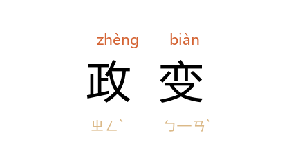例如:「军事政变」、「流血政变」。
