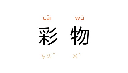 引《二十年目睹之怪现状》第三六回:“那失珠的果然杀了家里几个鸡,在鸡肚子里把珠子寻出来了,欢喜得了不得,买了彩物去谢测字的。”泛指财物。 《后汉书·段熲传》:“﹝ 竇太后 ﹞勑中藏府调金钱綵物,增助军费。拜 熲 破 羌 将军。”《新唐书·崔玄暐传》:“武后 曰:‘卿向改职,乃闻令史设斋相庆,此欲肆其贪耳,卿为朕还旧官。’乃復拜天官侍郎,厚赐綵物。”