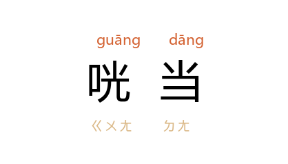 ⒈ 象声词,形容撞击振动的声音:水缸碰得咣当咣当响。