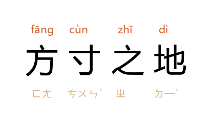 引《三国志·卷三五·蜀书·诸葛亮传》:「本欲与将军共图王霸之业者,以此方寸之地也。」唐·刘禹锡〈上杜司徒启〉:「收纸长想,欣然感生,寻省遭罹,万重不幸,方寸之地,自不能言。」