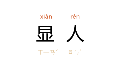 引《墨子·所染》:“举天下之仁义显人,必称此四王( 舜、禹、汤、武王 )者。”唐 韩愈 《故中散大夫河南尹杜君墓志铭》:“杜 氏大家,世有显人。承继绵绵,以及公身。”明 宋濂 《无尽灯禅师行业碑铭》:“师勉以忠孝,迄能为国宣劳,为时显人。”