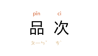 引南朝 梁 袁昂 《古今书评》:“阮研 书如贵胄失品次,不能復排突英贤。”宋 何薳 《春渚纪闻·十三家墨》:“东坡 先生临郡日,取试之,为书 杜 诗十三篇,各於篇下书墨工姓名,因第其品次云。”