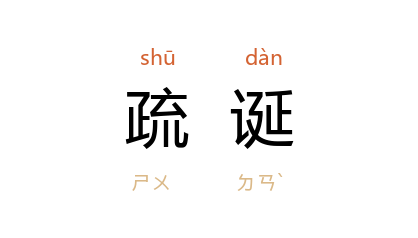 引北魏 杨衒之 《洛阳伽蓝记·正始寺》:“天水 人 姜质,志性疎诞,麻衣葛巾,有逸民之操。”《南史·颜延之传》:“延之 疏诞,不能取容当世。”明 何良俊 《四友斋丛说·娱老》:“又酒中好与人谈谐,性復疎诞悁忿。”