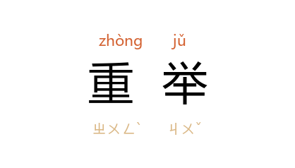 引唐 韩愈 《应所在典贴良人男女等状》:“今因大庆,伏乞令有司重举旧章,一皆放免。”清 江藩 《汉学师承记·戴震》:“经文每一水,云某水出某郡县,此下不更举水名。注则兼及所纳羣川,故须重举,经云过某县者,统一县而言。”