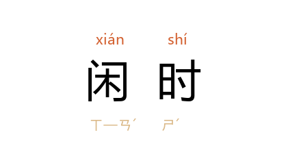 ⒈ 空闲之时。唐·杜荀鹤〈别四明钟尚书〉诗:「风前柳态闲时少,雨后花容淡处多。」也作「闲暇」。