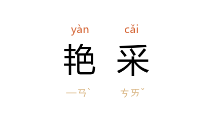 引晋 蔡洪 《斗凫赋》:“服文藻之华羽,备艳采之翠英。”南朝 梁 江淹 《齐太祖高皇帝诔》:“才罄艳采,笔尽丽辞。”