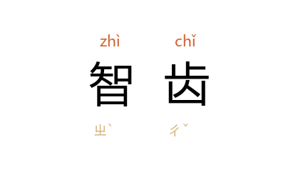 ⒈ 口腔中最后面的臼齿,即第三大臼齿。因其长出的时间约在成年,所以称为「智齿」。它是人类逐渐退化中的牙齿,有些人根本不长,有些则因空间不足而长歪。
