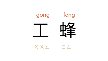 ⒈ 蜜蜂中生殖器官发育不完全的雌蜂,身体小,深黄灰色,翅膀长,善于飞行,有毒刺,腹部有分泌蜡质的蜡腺,两只后脚上有花粉篮。工蜂担任修筑蜂巢,采集花粉和花蜜,哺养幼虫和母蜂等工作,不能传种。