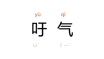 ⒉ 呼气,吐气。