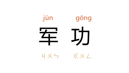 《初刻拍案惊奇·卷四》:「其兄解潜军功累积,已为大帅。」