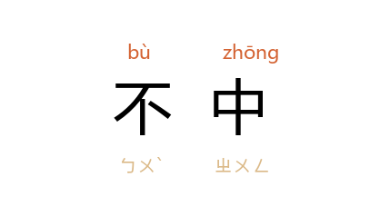 ⒈ 《易》卦六爻,分为上下卦,第二爻居下卦之中,第五爻居上卦之中。不在二、五两爻之位的谓之不中。不符合。犹不堪。指科举落第。没有中目标。不行;不成。不中用;快死了。不适合,不适当。