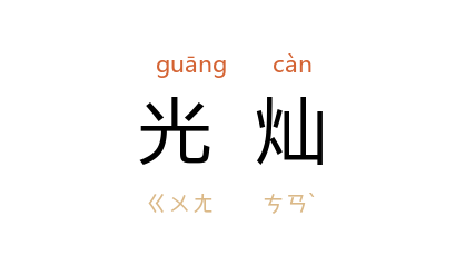 引《初刻拍案惊奇》卷七:“此月普照万方,如此光灿,其中必有非常好处。”老舍 《赶集·微神》:“我决不是入了复杂而光灿的诗境。”