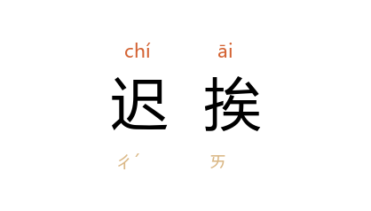 引《再生缘》第四五回:“你既肯行我就去,快须整备莫迟挨。”《白雪遗音·马头调·一块云笺》:“写封情书烦雁带,莫要迟挨。”蔡东藩 《南北史通俗演义》第九一回:“煬帝 匆匆退出,传旨召医官诊治 宣华(宣华夫人 ),医官不敢迟挨,当即入诊。”