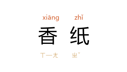 引《清平山堂话本·夔关姚卞吊诸葛》:「令承局于镇市买香纸、酒果、盘馔,先去庙中罗列。」《儒林外史·第四八回》:「王玉辉吃了茶,又将自己盘费买了一副香纸牲醴,把自己的书一同摆在灵柩前祭奠。」