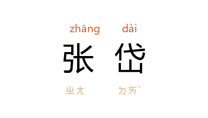 ⒈ 明末清初文学家。字宗子、石公,号陶庵、螺庵居士,山阴(今浙江绍兴)人。晚明小品文的代表作家,有《琅文集》、《陶庵梦忆》、《西湖梦寻》。另有《西湖七月半》、《湖心亭看雪》等散文名篇。