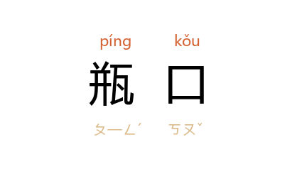 ⒈ 瓶子的开口端或颈部;喻拥挤阻塞的交通点。
