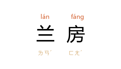 ⒉ 对女子居室的美称。南朝梁·刘孝绰〈洪上人戏荡子妇示行事〉诗:「日暗人声静,微步出兰房。」也作「兰堂」、「兰闺」、「兰室」。
