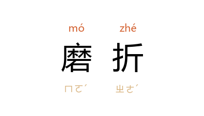 ⒈ 磨难、挫折。唐·白居易〈酬微之〉诗:「由来才命相磨折,天遣无儿欲怨谁。」也作「折磨」。
