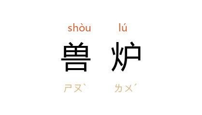 引唐 杜牧 《春思》诗:“兽炉凝冷焰,罗幕蔽晴烟。”元 无名氏 《连环计》第二折:“兽炉香裊散清风。”明 无名氏 《霞笺记·端阳佳会》:“午节欣逢佳辰,喜遇筵开,兽炉祥拥,榴绽繁红。”