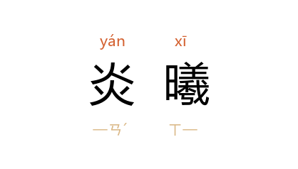 引唐 韩愈 《郑群赠簟》诗:“倒身甘寝百疾愈,却愿天日恒炎曦。”唐 皎然 《苦热行》:“炎曦曝肌肤,毒雾昏檐楹。”宋 陆游 《秋雨初晴有感》诗:“炎曦赫赫尚餘威,冷雨萧萧故解围。”