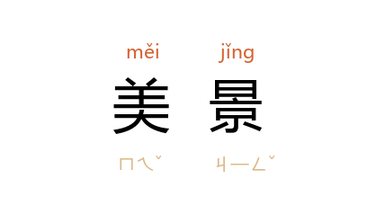 例如:「他坐在窗口,欣赏窗外的美景。」