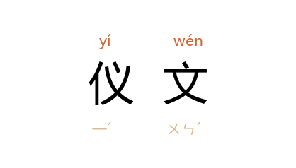 引唐 张九龄 《请行郊礼疏》:“圣朝典则,盛世仪文,亦云咸备,可谓无遗矣。”《二刻拍案惊奇》卷十九:“灯烛辉煌,仪文璀璨,好不富贵!”清 纪昀 《阅微草堂笔记·滦阳消夏录三》:“先生襟怀萧散,僕亦倦於仪文,但得神交,何必定在形骸之内耶!”中国近代史资料丛刊《辛亥革命·蔡专使元培代表布告全国文》:“京 津 之舆论……大抵于 袁公 南行就职之举,甚为轻视,或谓之仪文,或谓之少数人之意见。”