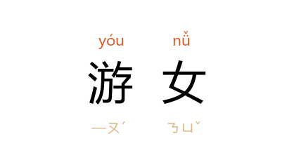 ⒈ 出游的女子。《诗·周南·汉广》:“汉有游女,不可求思。”郑玄笺:“贤女虽出游流水之上,人无欲求犯礼者。”一说为汉水女神。见刘向《列女传》及《文选·嵇康〈琴赋〉》李善注引薛君说。