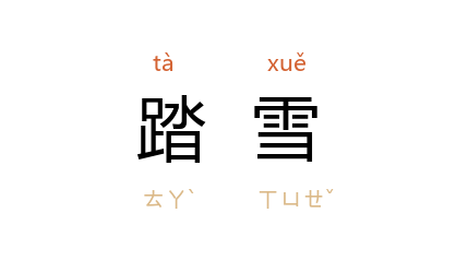 ⒈ 亦作“蹋雪”。谓在雪地行走。亦指赏雪。