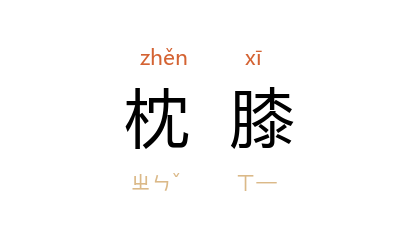 ⒈ 枕着膝盖。表示亲密。