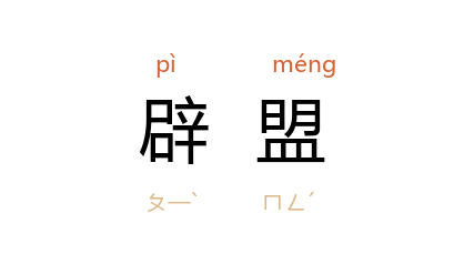 ⒈ 谓开诚心,歃血立盟。《周礼·夏官·戎右》:“盟则以玉敦辟盟,遂役之,赞牛耳桃茢。”郑玄注:“将歃血者,先执其器,为众陈其载辞,使心皆开辟也。”一说,谓开敦盖后歃血为盟。孙诒让正义:“窃谓敦有盖,歃血时必先开其盖而后盟,是为辟盟。”