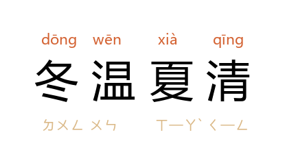 - 冬温夏清:冬天使父母温暖,夏天使父母凉爽。指人子孝道。亦泛称冬暖夏凉。