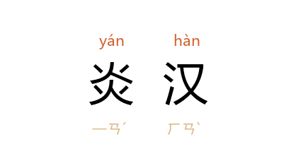 ⒉ 传说上古 炎帝 为 汉 族祖先,因称 中国 或 汉 族为 炎汉。