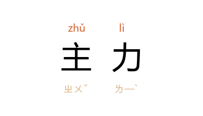 例如:「主力部队」、「他是排球校队中的攻击主力。」