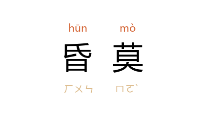 引《汉书·济东王刘彭离传》:“彭离 骄悍,昬莫私与其奴亡命少年数十人行剽,杀人取财物以为好。”《汉书·淮南王刘安传》:“每宴见,谈説得失及方技赋颂,昏莫然后罢。”