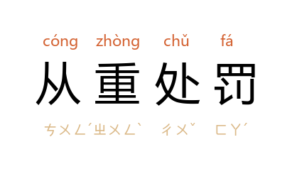 ⒈ 刑罚上的从重处罚,指法院在法定刑幅度以内判处最重的或较重的刑罚。我国刑法规定了从重处罚的情节。