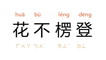 引评剧《铡阁老》第二场:“瞧见花不楞登的没有?……顺着我的手儿瞧。”萧军 《五月的矿山》第九章:“这若和咱们矿上那几个花不愣登的女职员一比,你就懂得好歹啦。”