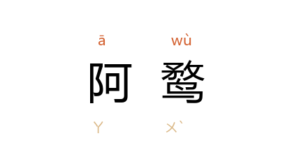 ⒈ 三国魏荀攸之妾的小名。《三国志·魏志·朱建平传》:“初,颍川荀攸、钟繇相与亲善。攸先亡,子幼。繇经纪其门户,欲嫁其妾。与人书曰:'吾与公达曾共使朱建平相,建平曰:”荀君虽少,然当以后事付钟君。“吾时啁之曰:”惟当嫁卿阿鹜耳。“何意此子竟早陨没,戏言遂验乎!今欲嫁阿鹜、使得善处。'”后用以代称他人的妻妾。