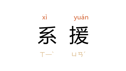引《国语·晋语九》:“董叔 将娶於 范氏,叔向 曰:‘ 范氏 富,盍已乎!’曰:‘欲为繫援焉。’”汉 刘向 《列女传·许穆夫人》:“古者诸侯之有女子也,所以苞苴玩弄繫援於大国也。”林纾 《陈喜人先生墓表》:“吾文果可售者,当不以拒婚而失之;若不可售,恶用求繫援以自诬。”