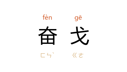 引三国 魏 曹植 《责躬诗》:“甘赴 江 湘,奋戈 吴 越。”晋 陆机 《汉高祖功臣颂》:“奋戈 东城 、禽 项 定功。”孙中山 《致黄兴书》:“中国 当此外患侵逼、内政紊乱之秋,正我辈奋戈饮弹、碎肉喋血之时。”