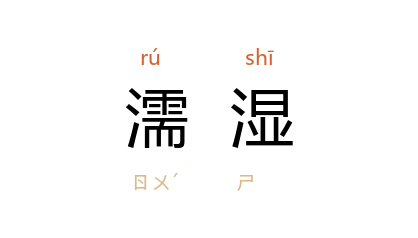 ⒈ 沾湿、潮湿。「湿」文献异文作「湿」。
