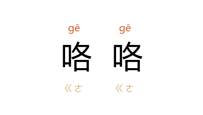 ⒈ 状声词:(1) 形容鞋子踩在木板的声音。(2) 形容笑声。(3) 形容母鸡的叫声。